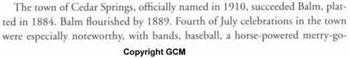Cedar Springs was a Mineral Springs Resort. It evolved into amusements so maybe it should be indexed as such. Many if not all Mineral Spring Resorts added various attractions until most died away in the late 1800's or early 1900's. I think Cedar Springs exists as a town/city today. Its birth centered around the 'water'...Mineral Springs..etc.
