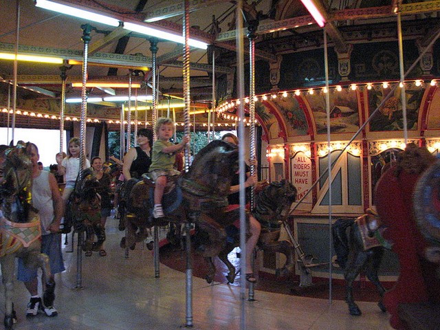 In 1940, the German Carousel, two miniature steam locomotives, the Little Auto Ride, the Roto Whip and the Ferris wheel were added. The Roto Whip and Ferris wheel would remain as rides until the park's closing. The park saw its first major expansion in the 1950s with the addition of the Little Dipper and the merry-go-round. Fritz's adult children also became more involved in the park at this time. The 1960s saw bumper cars replace the original pony ride, as well as the unexpected death of Fritz in 1967.