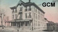 Next to the post office, at the right of the river bridge, stands the Mason House, an early Iowa landmark. This two-and-one-half story brick hotel in modified Georgian architecture was built in the late forties by Billie Robinson. During the flood of 1851 it was struck by a tugboat which took away part of a corner but left it otherwise uninjured. When L. J. Mason and his family came to Bentonsport from New York in 1857, they rented the small Exchange Hotel nearby but, a year later, to accommodate their rapidly increasing patronage, bought the building known then as the "Ashland House." This, as the "Mason House", became famous up and down the Des Moines River as the stop-over for steamboat captains and railroad men. After L. J. Mason's death in 1867, his son George managed the hotel until 1876, when he moved to Des Moines. His sister, Mrs. Clark, then returned to Bentonsport and took charge.