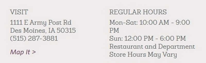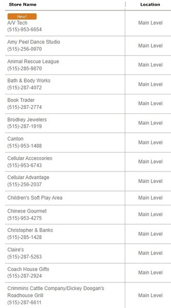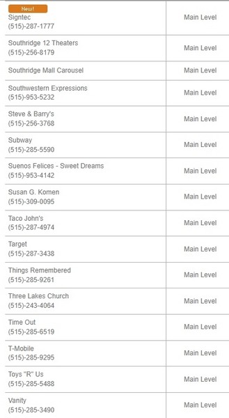 Southridge Mall offers 120 mall shops, including four department stores, a grocery store and Advanced Auto Parts, Chi-Chi's,Hy-Vee, Midas, Nevada Bob's, PetCo, Pier I Imports,Southridge Cinemas and Toys R Us on the out parcels.