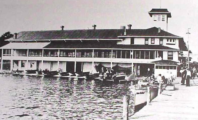 White Pier was built in 1910 and an early popular Dance Hall located at the west end of Main street where the seawall now stands. Boat rentals on its lower level and movies and dances in its upper ballroom provided many evenings of entertainment. The tornado of August 27, 1931 destroyed the structure.