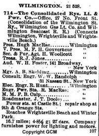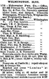 In 1902 Hugh MacRae of Wilmington formed Consolidated Railways, Light and Power Company, and purchased the city's street railways, light, and power facilities. He had already established a company to generate electricity near Rockingham on the Pee Dee River. In 1907 MacRae strengthened his holdings by forming Tide Water Power Company, retaining ownership of the streetcar system.