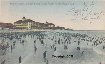 Also beginning to develop late in the 1800s, Carolina Beach south of Wilmington became a very popular oceanfront destination. In 1898 the Sedgeley Hall Club and the Hanover Seaside Club were established with sizable memberships. The Carolina Moon Pavilion was quite popular with visitors until its destruction by the great fire of 1940, which destroyed 24 businesses and three whole blocks, including the boardwalks and amusement area.